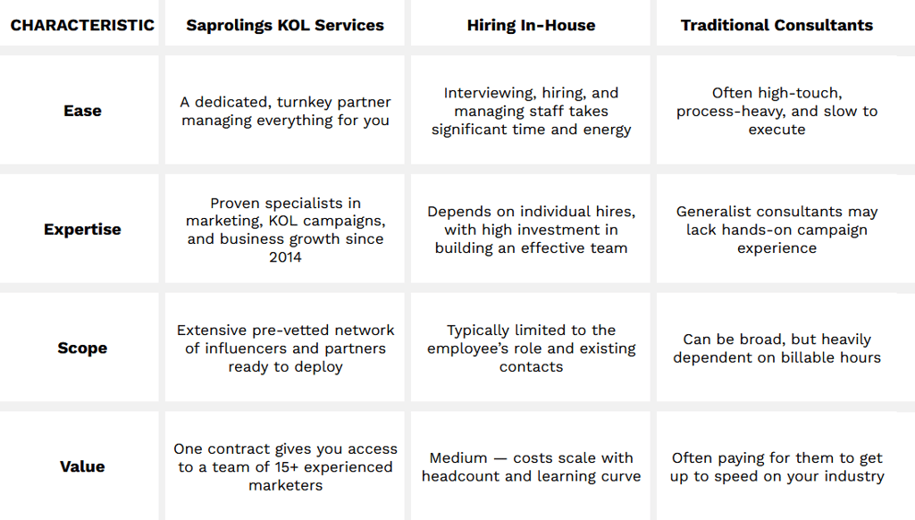 Companies who partner with Saprolings for KOL campaigns avoid the common pitfalls:
